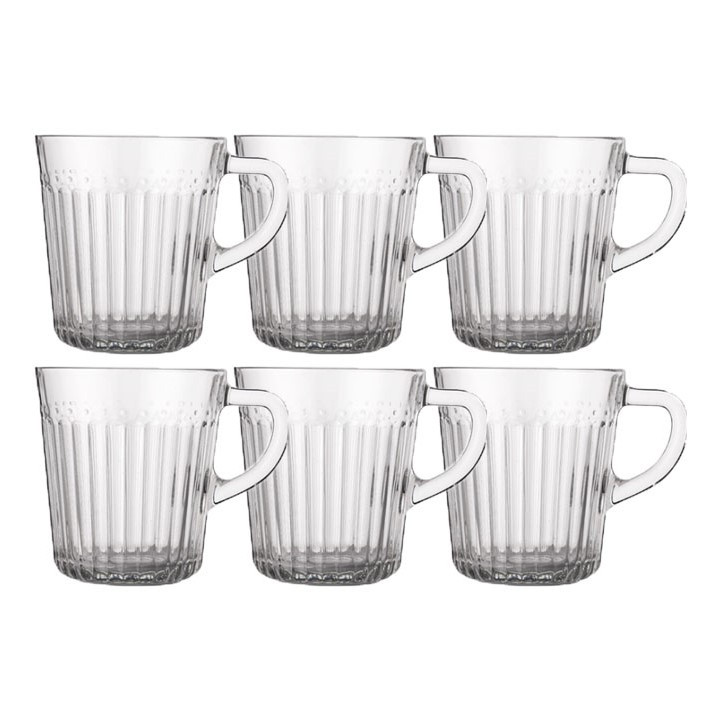 لیوان شیشه ای شیاردار 280 سیسی دسته دار لیمون کد کالا 2281