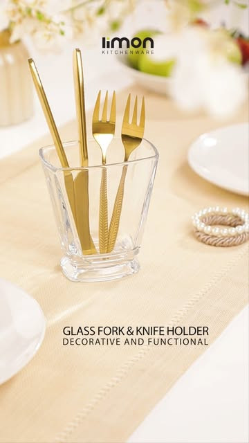 محصول جدید جا کاردی ایستاده شیشهای با ابعاد طول: 10.5 سانتیمتر، عرض: 7 سانتیمتر و ارتفاع: 12 سانتیمتر.