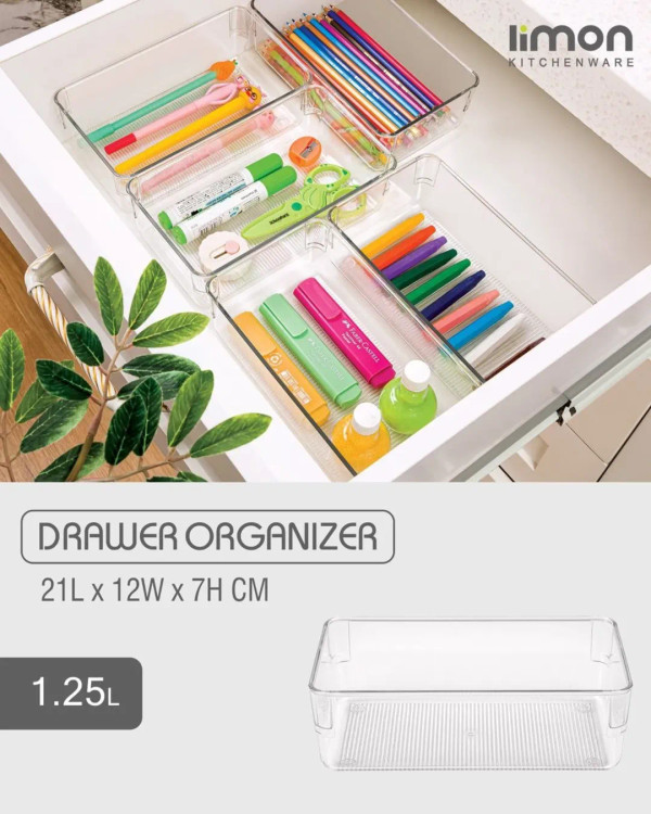 نظم دهنده کشو ۱.۲۵ لیتر با ابعاد: طول ۲۱ عرض ۱۲ ارتفاع ۷ سانتیمتر.