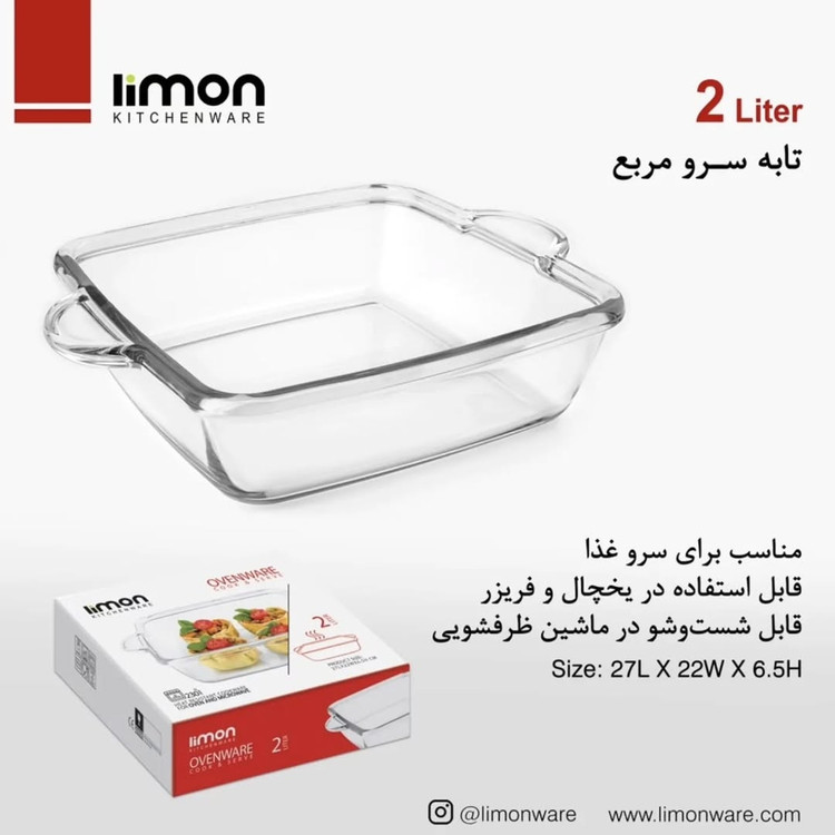 تابه سرو شیشه ای مربع ۲ لیتر کد کالا 2237 لیمون