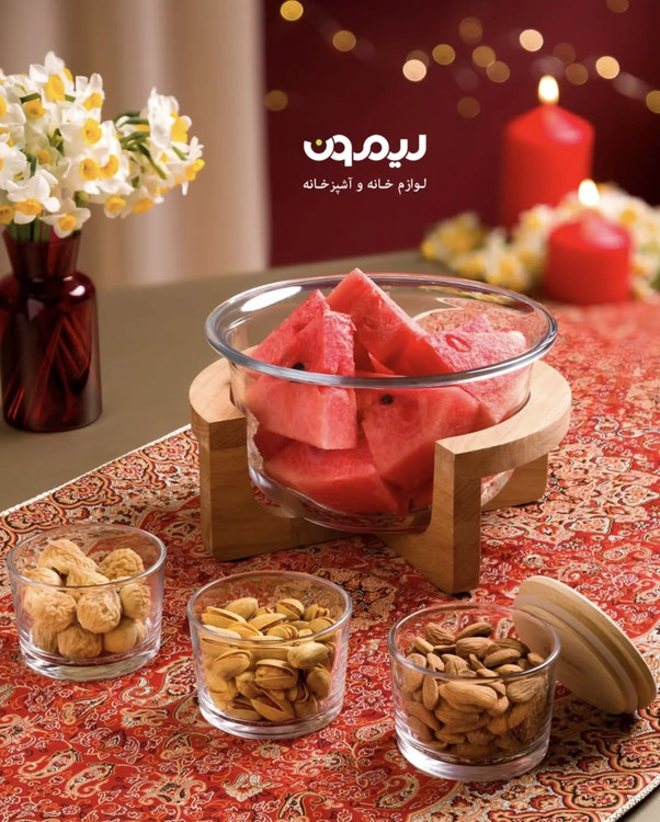 کاسه سرو پایه چوبی ۳ لیتری با ابعاد: طول ۲۶ عرض ۲۴.۵ ارتفاع ۱۵ سانتیمتر.