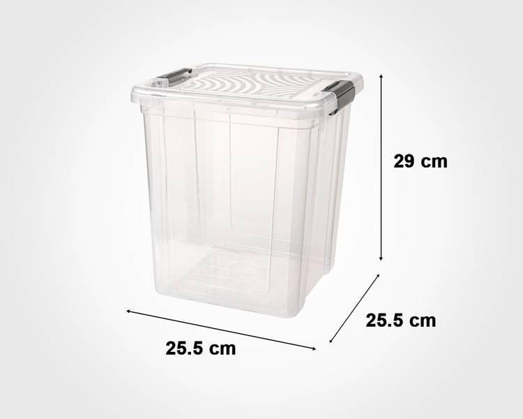 باکس مربع 12 لیتر با ابعاد: طول و عرض 25.5 ارتفاع 29 سانتیمتر.