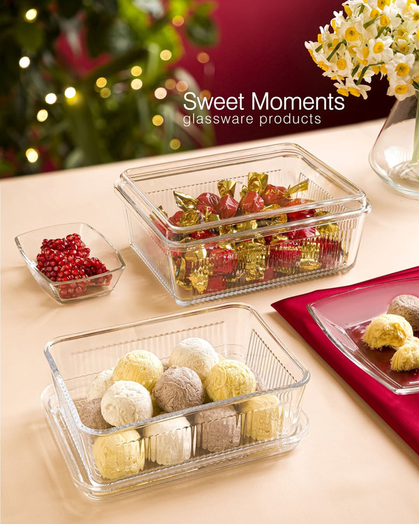 بیسکویت و شکلاتخوری شیشهای مستطیل با درب اکرولیک لیمون کد2260
