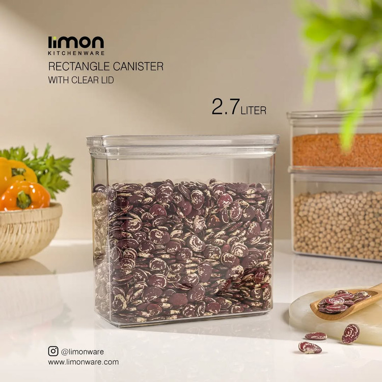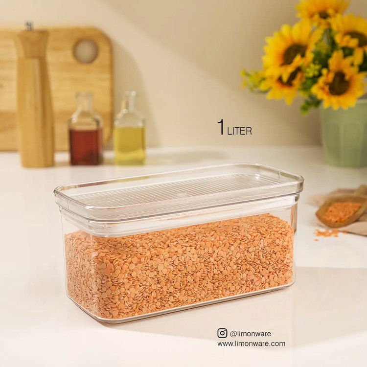 بانکه های مستطیل با درب شفاف قابل استفاده برای نگهداری انواع مواد غذایی خشک مانند حبوبات، ادویه جات و شیرینی جات و قند و چای. این محصول با طراحی مدرن در ابعاد متنوع تعبیه شده، بدنه شفاف این اجازه را می دهد که محتویات درون آن را ببینید. این بانکه ها غیرقابل نفوذ بوده و باکتری ها و حشرات را به داخل محفظه راه نمی دهند. قابلیت این را دارند که به صورت مرتب روی یکدیگر قرار گرفته تا در حفظ فضا صرفه جویی شود.
