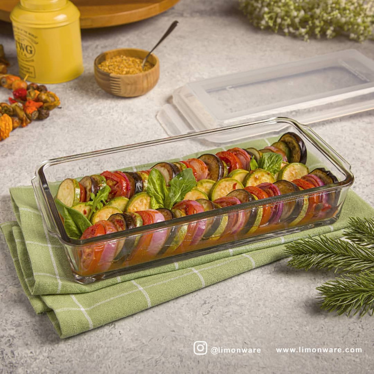 ابعاد : طول: ۳۱ سانتیمتر عرض: ۱۶ سانتیمتر ارتفاع: ۸ سانتیمتر دارای نوار سیلیکونی (واشر) برای جلوگیری از تبادل هوا که موجب محافظت مواد غذایی در برابر باکتری های هوازی می شود همچنین از جذب و انتشار بوی نامطبوع جلوگیری می کند. قابل استفاده در مایکروویو و یخچال و فریزر تذکر : برای استفاده داخل ماکروویو درب ظرف 'حتما' برداشته شود.