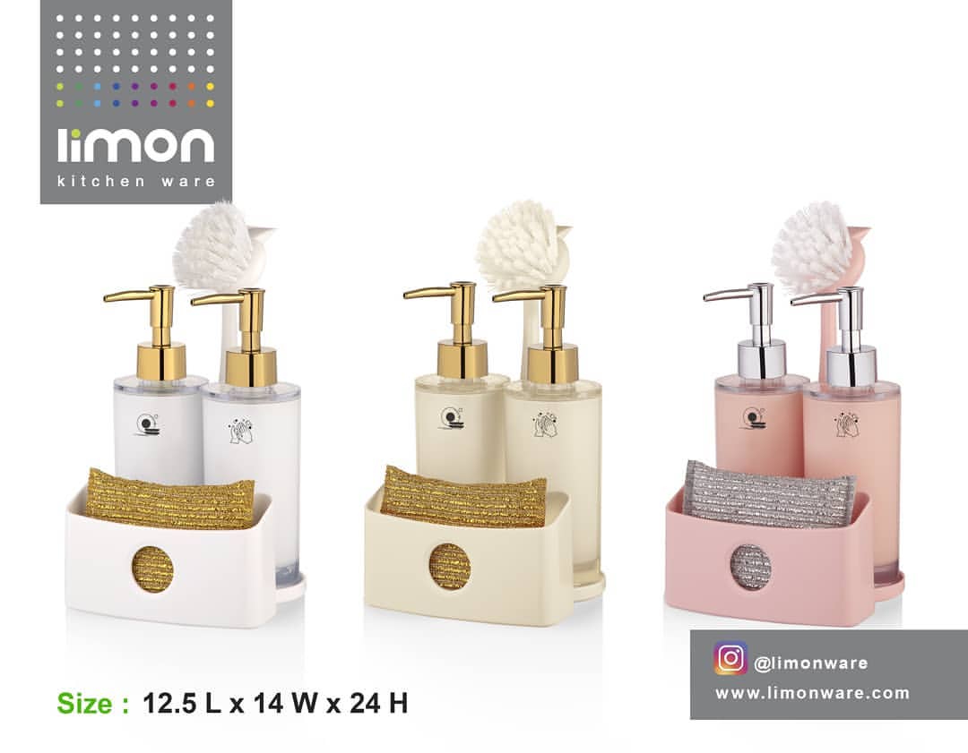 مناسب برای استفاده مایع ظرفشویی و مایع دستشویی همراه با برس شستشو. رنگبندی: سفید، وانیلی و صورتی پاستیلی.