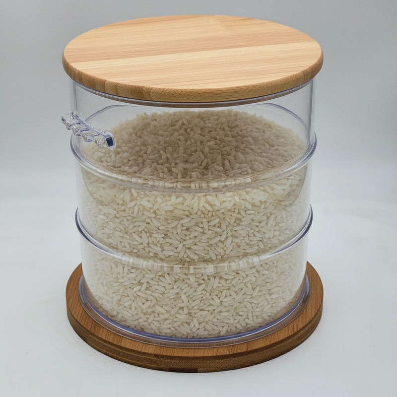 ظرفیت این مدل ظرف برنج 10 کیلو می باشد. شمامی توانید بجز برنج محصولات دیگری هم داخل این ظروف بریزید یک گزینه خوب برای آرد، حبوبات، نون خشک و ... می باشد. این مدل از یک سایز کوچک تر هم به سایز 5 کیلو هم تولید شده که میتوانید بصورت جداگانه تهیه کنید.