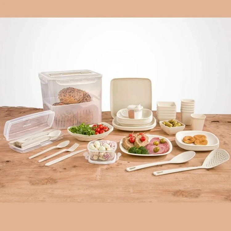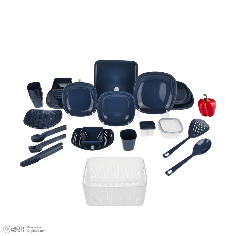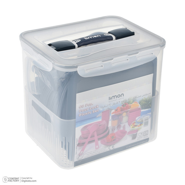 سرویس پیکنیک ۶۰ پارچه لیمون، انتخابی عالی برای سفر، پیکنیک و جهیزیه است. این ست شامل لیوان، بشقاب، کاسه، ظرف غذا و قاشق و چنگال کفگیر و ملاقه و... میباشد. تمامی قطعات از پلاستیک مقاوم و بدون مواد مضر ساخته شدهاند. طراحی سبک، حمل آسان و رنگبندی شاد از ویژگیهای محبوب این سرویس است. مناسب برای استفاده خانوادههای ۶ تا ۸ نفره میباشد. ساخت ایران بوده و با کیفیت بالا و بستهبندی شکیل در دسترس همگان میباشد. تنوع رنگ جذاب و متنوع دارد. قابل شستوشو با ماشین ظرفشویی میباشد. طراحی سبک و کمحجم باعث راحتی شما میباشد. مناسب سفر و پیکنیک هست. دارای جعبهی چفتی با دسته برای حمل آسان میباشد.