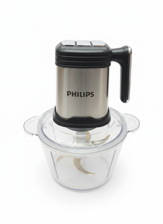شرکت فیلیپس یکی از برندهای معتبر اروپایی می باشد این محصول مدل پرومیکس با موتور پر قدرت 1800 وات که قوی ترین موتور استفاده شده در خردکن می باشد شیشه این محصول از پیرکس مقاوم 8 میلی ساخته شده که در برابر هر گونه ضربه ای مقاوم می باشد و در ظرفشویی قابل شستشو می باشد مخزن 3.5 لیتری می باشد و این محصول از تیغه های استیل 18.10 و 6 عددی تشکیل شده که برای همه چی مورد استفاده قرار می دهد که برای انواع گوشت پیاز و سبزیجات مورد استفاده می شود و در اینکه شفت این محصول فلزی می باشد که در برابر خورندگی مقاوم می باشد